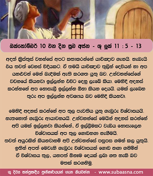 ඔක්තෝම්බර් 10 වන දින සුබ අස්න – ශු. ලූක් 11: 5 – 13