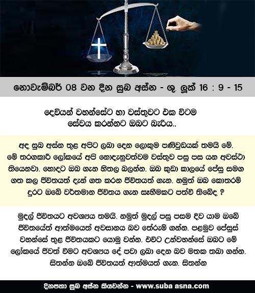 නොවැම්බර් 08 වන දින සුබ අස්න – ශු. ලූක් 16: 9 – 15