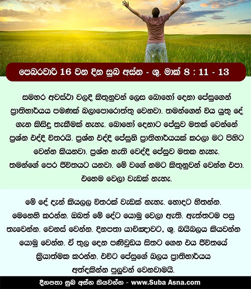 පෙබරවාරි 16 වන දින සුබ අස්න – ශු. මාක් 8: 11 – 13