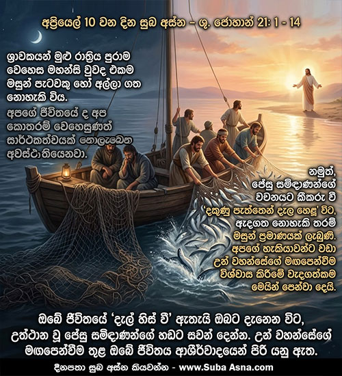 අප්‍රියෙල් 10 වන දින සුබ අස්න – ශු. ජොහාන් 21: 1 – 14