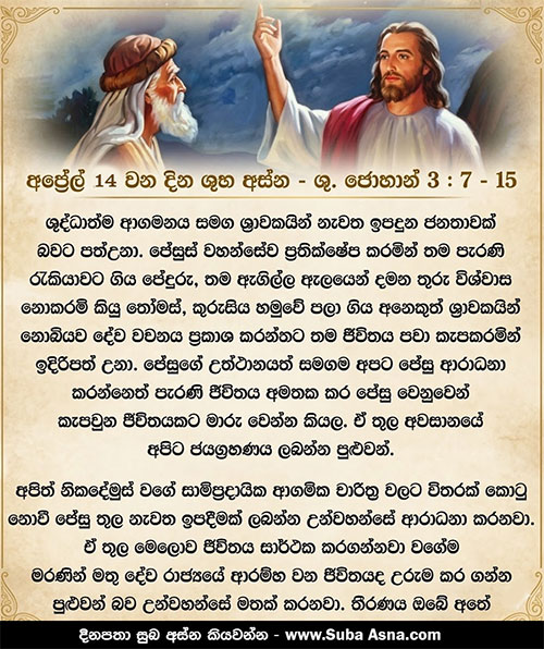 අප්‍රියෙල් 14 වන දින සුබ අස්න – ශු. ජොහාන් 3: 7 – 15