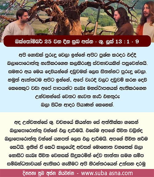 ඔක්තෝම්බර් 25 වන දින සුබ අස්න – ශු. ලූක් 13: 1 – 9