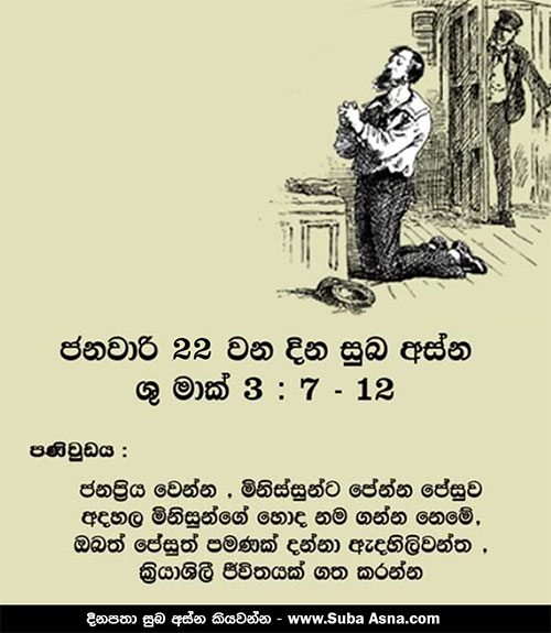 ජනවාරි 22 වන දින සුබ අස්න – ශු. මාක් 3: 7 – 12