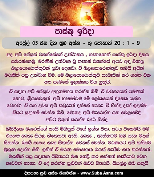 1 සතියේ පළමු වන දා හිමිදිරියේ ම, අඳුර තිබිය දී, මග්දලායේ මරියා සොහොන් ගෙය ළඟට අවුත්, සොහොන් ගෙයින් ගල ඉවත් කොට තිබෙන බව දුටුවා ය. 2 එබැවින් ඈ සීමොන් පේදුරු ද ජේසුස් වහන්සේ ප්රේම කළ අනික් ශ්රාවකයා ද වෙත දුව ගොස්, ”ඔවුන් සමිඳාණන් වහන්සේ සොහොන් ගෙයින් ඉවතට ගෙන ගොස් තිබේ; ඔවුන් උන් වහන්සේ කොතැනක තැබුවා ද කියා අපි නොදනිමු”යි කීවා ය. 3 එවිට පේදුරු ද අනික් ශ්රාවකයා ද නික්ම විත් සොහොන් ගේ දෙසට ගියහ. 4 දෙදෙනා ම එක් ව දිව්වෝ ය. අනික් ශ්රාවකයා පේදුරු පසු කර දුව ගොස් පළමුවෙන් සොහොන් ගෙට පැමිණ, 5 නැමී බලා, සිහින් හණ රෙදි එහි තිබෙන බව දිටී ය. එහෙත් ඔහු ඇතුළට නොගියේ ය. 6 සීමොන් පේදුරු ඔහුට පසුව පැමිණ සොහොන් ගේ ඇතුළට ගොස්, හණ රෙදි එහි තිබෙන බවත්, 7 උන් වහන්සේගේ හිස ඔතා තිබූ රෙදි කඩ, හණ රෙදි සමඟ නොව, වෙන ම එක් තැනෙක අකුළා තිබෙන බවත් දුටුවේ ය. 8 එකල සොහොන් ගේ ළඟට පළමුවෙන් පැමිණි ඒ අනික් ශ්රාවකයා ද, ඇතුළට ගොස් දැක විශ්වාස කෙළේ ය. 9 උන් වහන්සේ මළවුන්ගෙන් නැඟිට වදාළ යුතු යයි ලියන ලද ශුද්ධ ලියවිල්ල, ඒ වන තුරු ඔවුන් තේරුම් ගෙන සිටියේ නැත.
